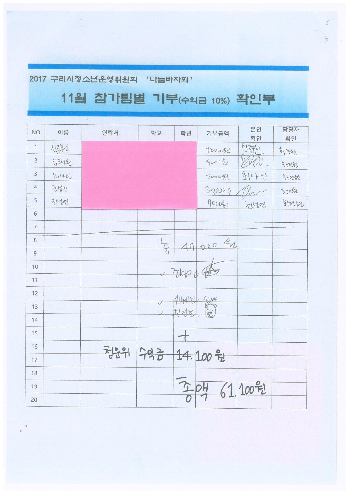 2017.11월 나눔바자회 수익금10% 기부