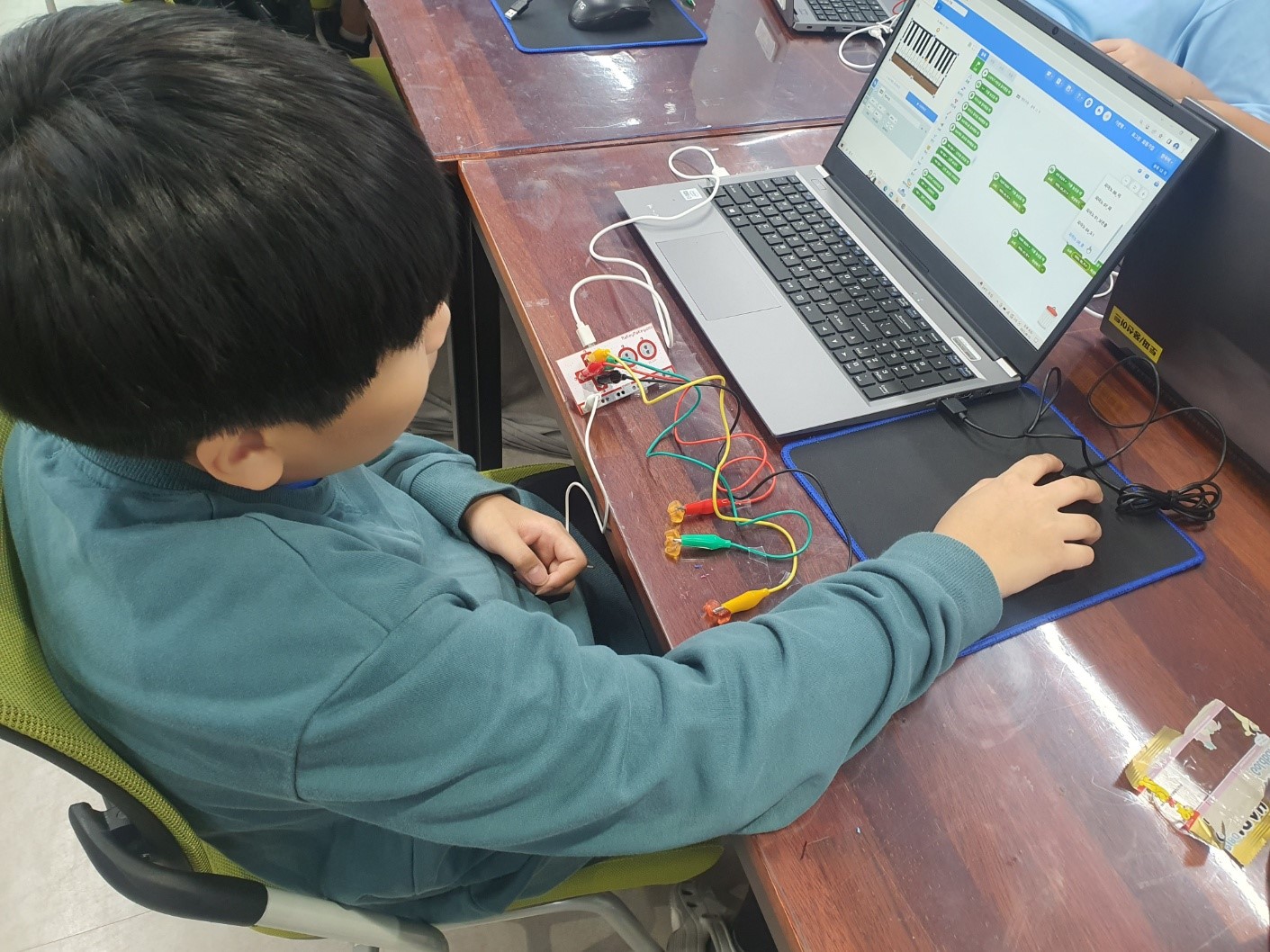 늘푸름방과후아카데미 창의적코딩체험(인창도서관연계) 작성자 권도연 등록일자 2023년 9월 15일 18시 7분 24초 조회 322 늘푸름방과후아카데미 창의적코딩체험(인창도서관연계)오늘은 방과후친구들 코딩2회차수업으로 메이키메이키 수업을 하였어요.도체와 부도체의 원리를 알아보고 꼬마곰젤리를 누르며 곰 세마리 연주를 하였습니다. 디지털과 한발작 더 친해진 시간이었습니다. 2.jpg [ Size : 373.88KB , Down : 153 ] 미리보기 다운로드 목록보기