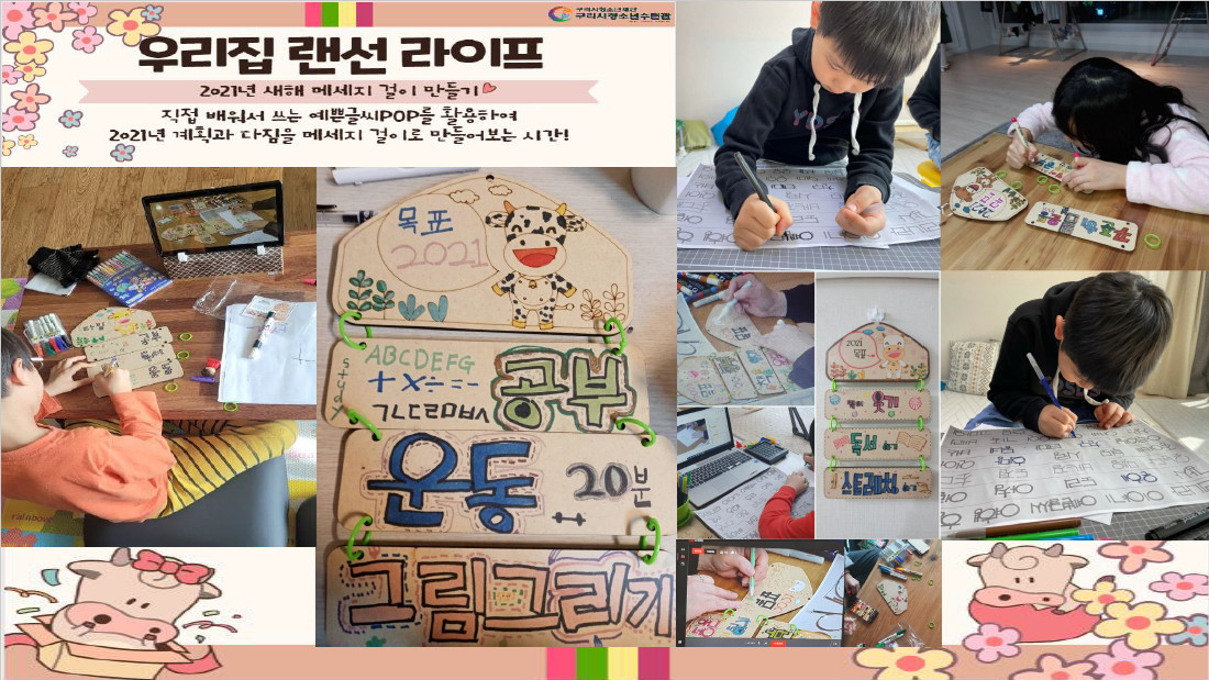 우리집 랜선라이프< 새해 메세지걸이 만들기 > 작성자 관리자 등록일자 2021년 5월 4일 16시 20분 3초 조회 552 청소년교육팀 2021년 첫 비대면 프로그램우리집 랜선라이프 < 새해 메세지걸이 만들기 >처음 배우는 POP글씨이지만 수업에 집중하는 청소년 친구들모습이 너무 멋있네요 ! Cap 2021-05-04 16-18-40-780.jpg [ Size : 287.89KB , Down : 160 ] 미리보기 다운로드 Cap 2021-05-04 16-18-40-780.jpg [ Size : 287.89KB , Down : 158 ] 미리보기 다운로드 목록보기