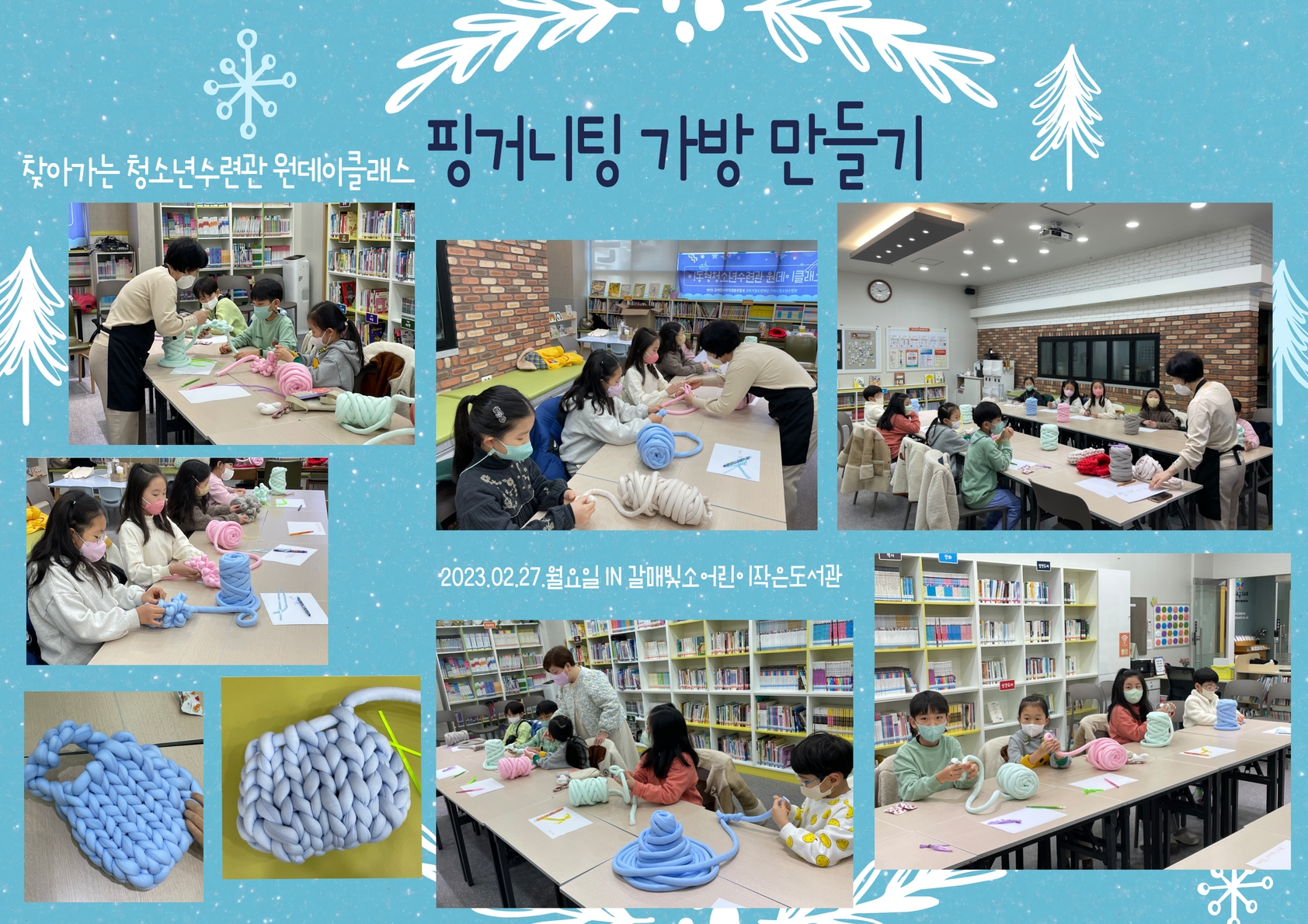 찾아가는청소년수련관 원데이클래스-핑거니팅 가방만들기(23.02.27) 작성자 관리자 등록일자 2023년 5월 3일 14시 4분 30초 조회 336 1회-230227.jpg [ Size : 1.53MB , Down : 147 ] 미리보기 다운로드 목록보기