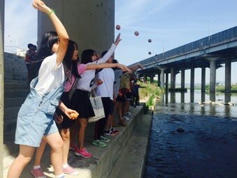 4월 달에 정성껏 만든 em발효흙공을 왕숙천에 투척하는 날이였는데요!!