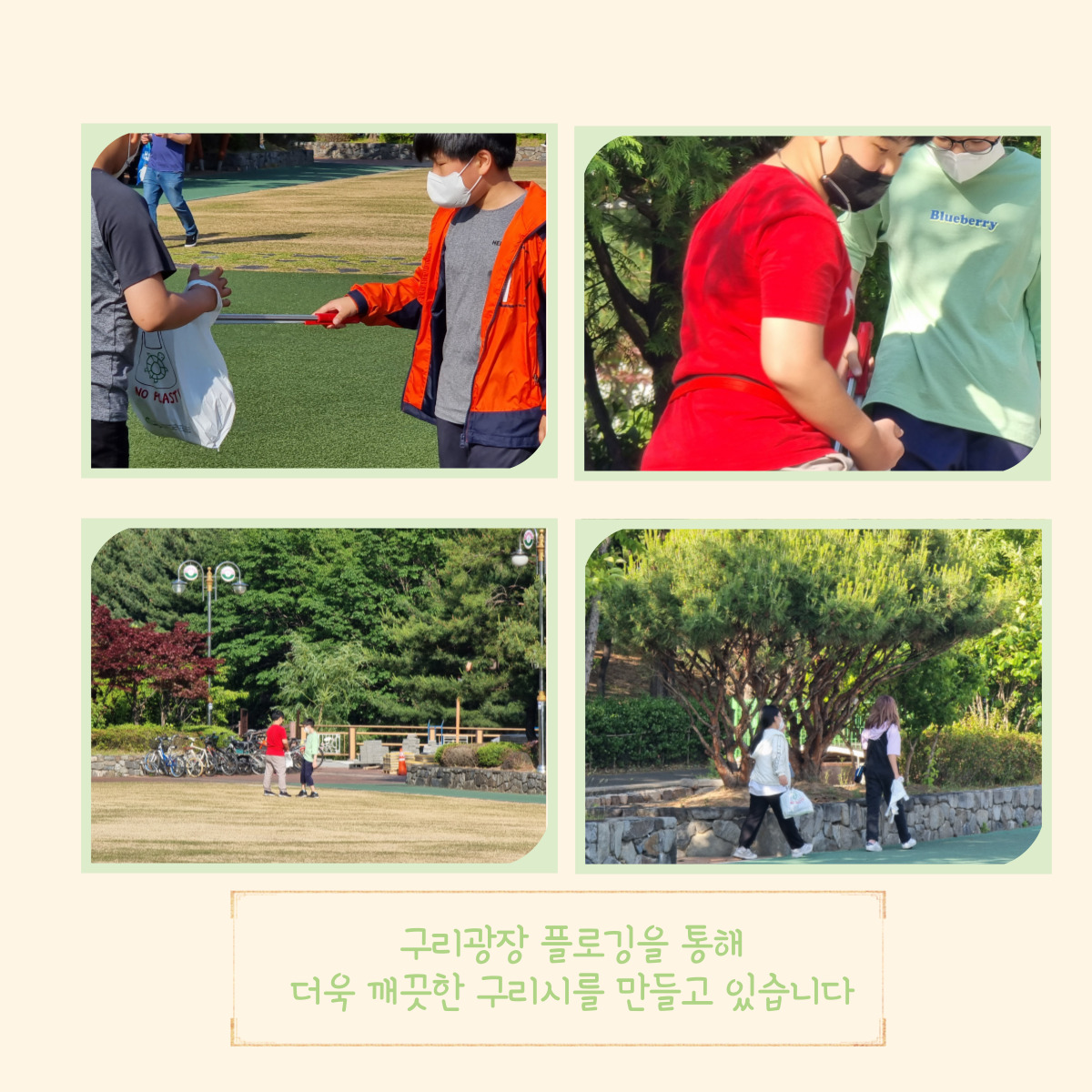 늘푸름 친구들과 함께 한 플로깅 활동 덕분에 조금 더 깨끗해진 구리광장이 되었습니다.