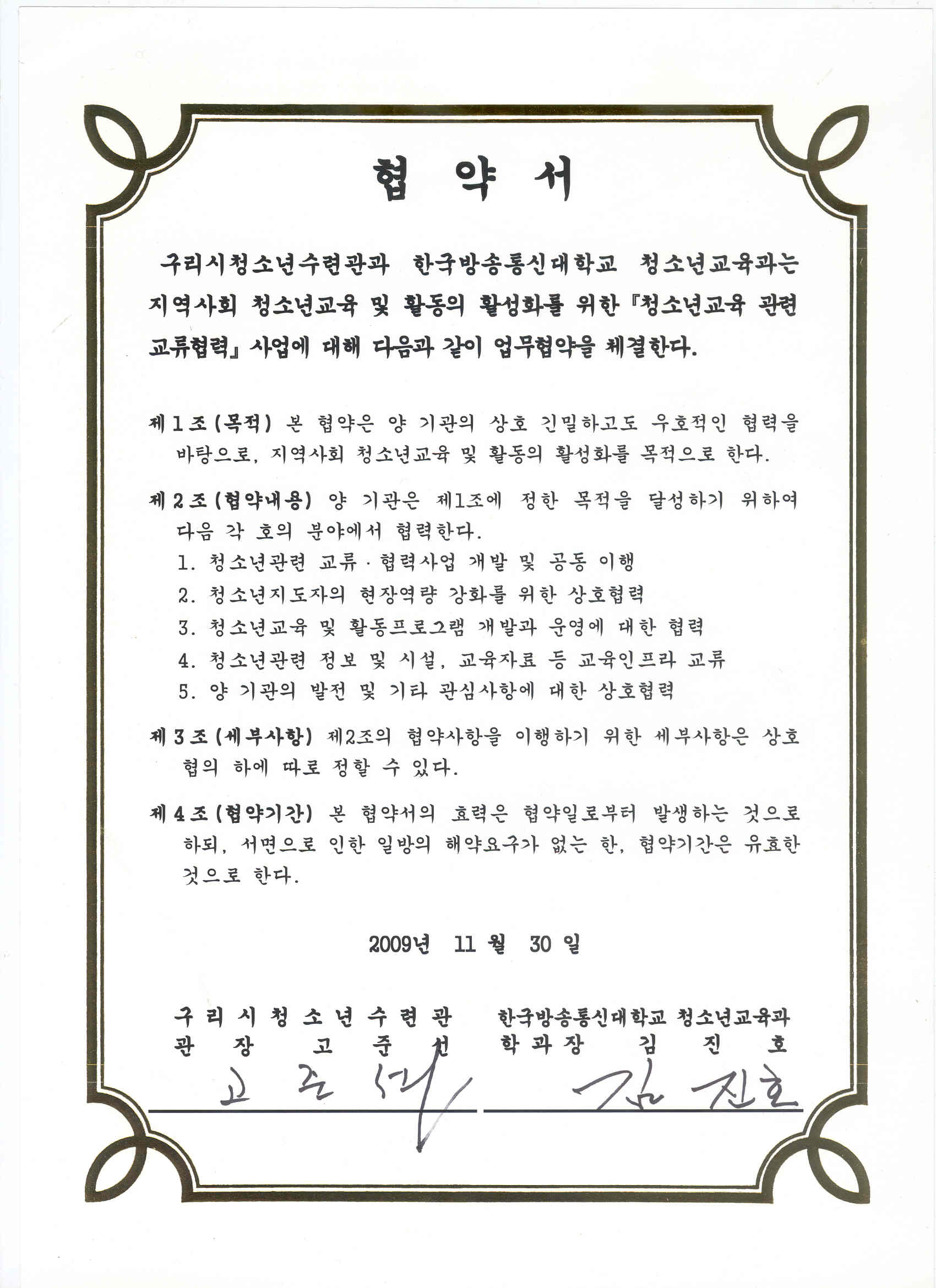 구리시청소년수련관과 한국방송통신대학교 청소년교육과는