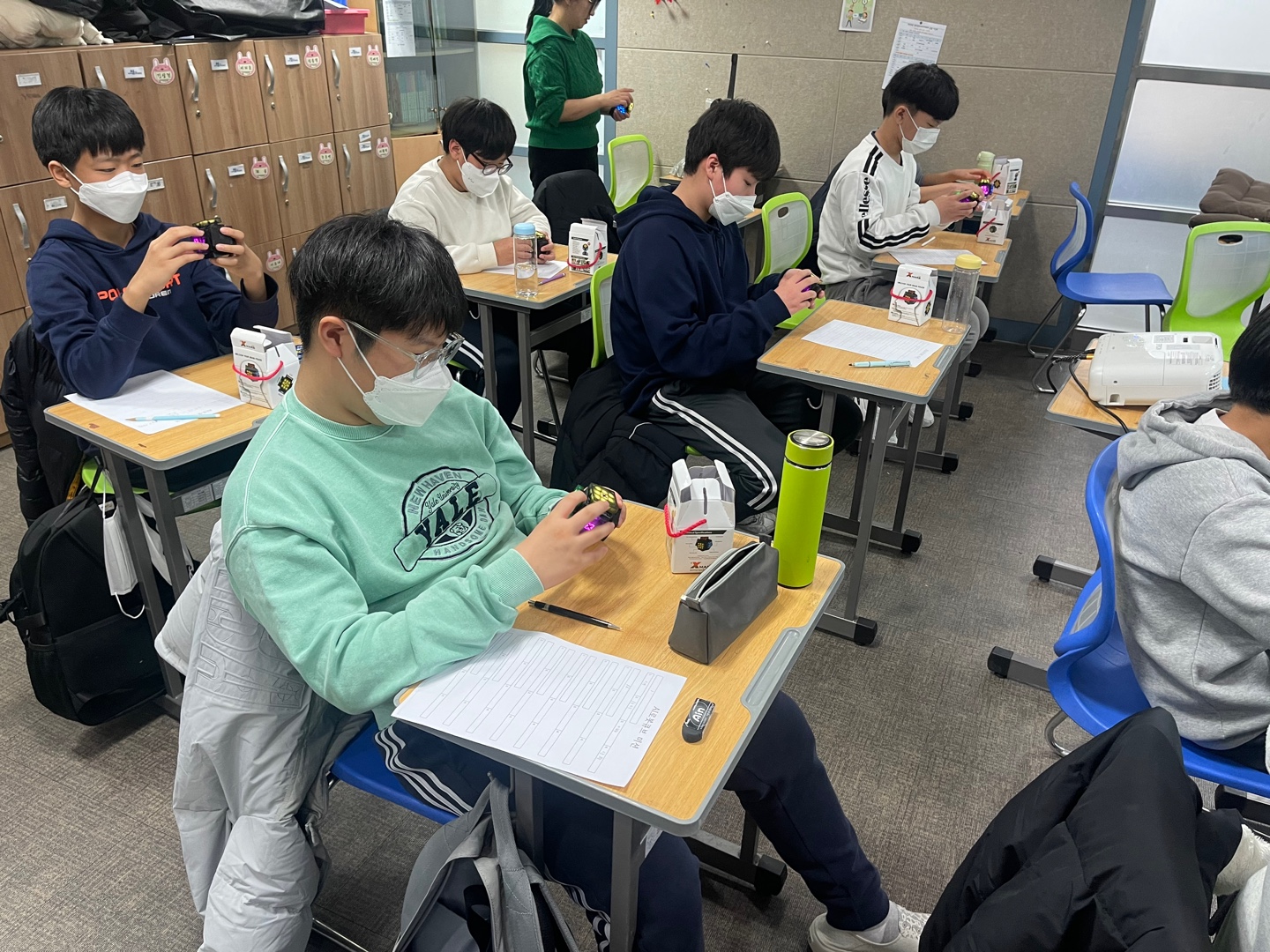 투픽스 큐브의 8단계 알고리즘 마지막 단계인 8단계 알고리즘을 외워서 큐브를 완성해보고 경우의 수에 대한 생각을 해보았습니다. 모드에 따라 알고리즘이 저장된 AI 큐브를 활용하여 자동으로 움직이는 큐브로봇을 체험해보았습니다.