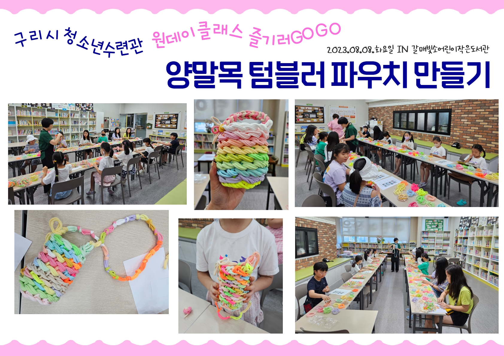 찾아가는청소년수련관 원데이클래스-양말목 텀블러 파우치 만들기(23.08.08) 작성자 김윤지 등록일자 2023년 8월 21일 17시 40분 29초 조회 317 갈매_230808.jpg [ Size : 1.16MB , Down : 152 ] 미리보기 다운로드 목록보기