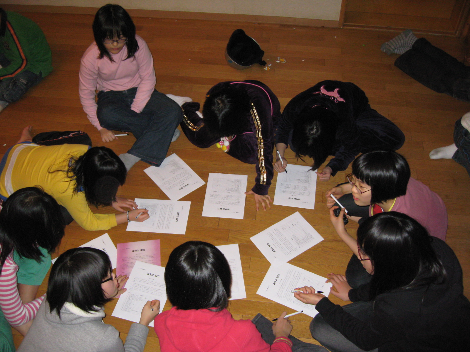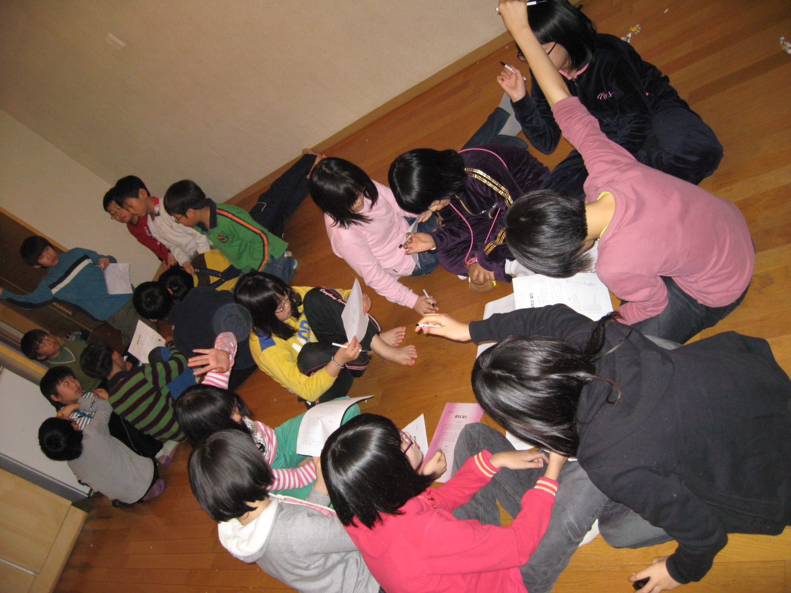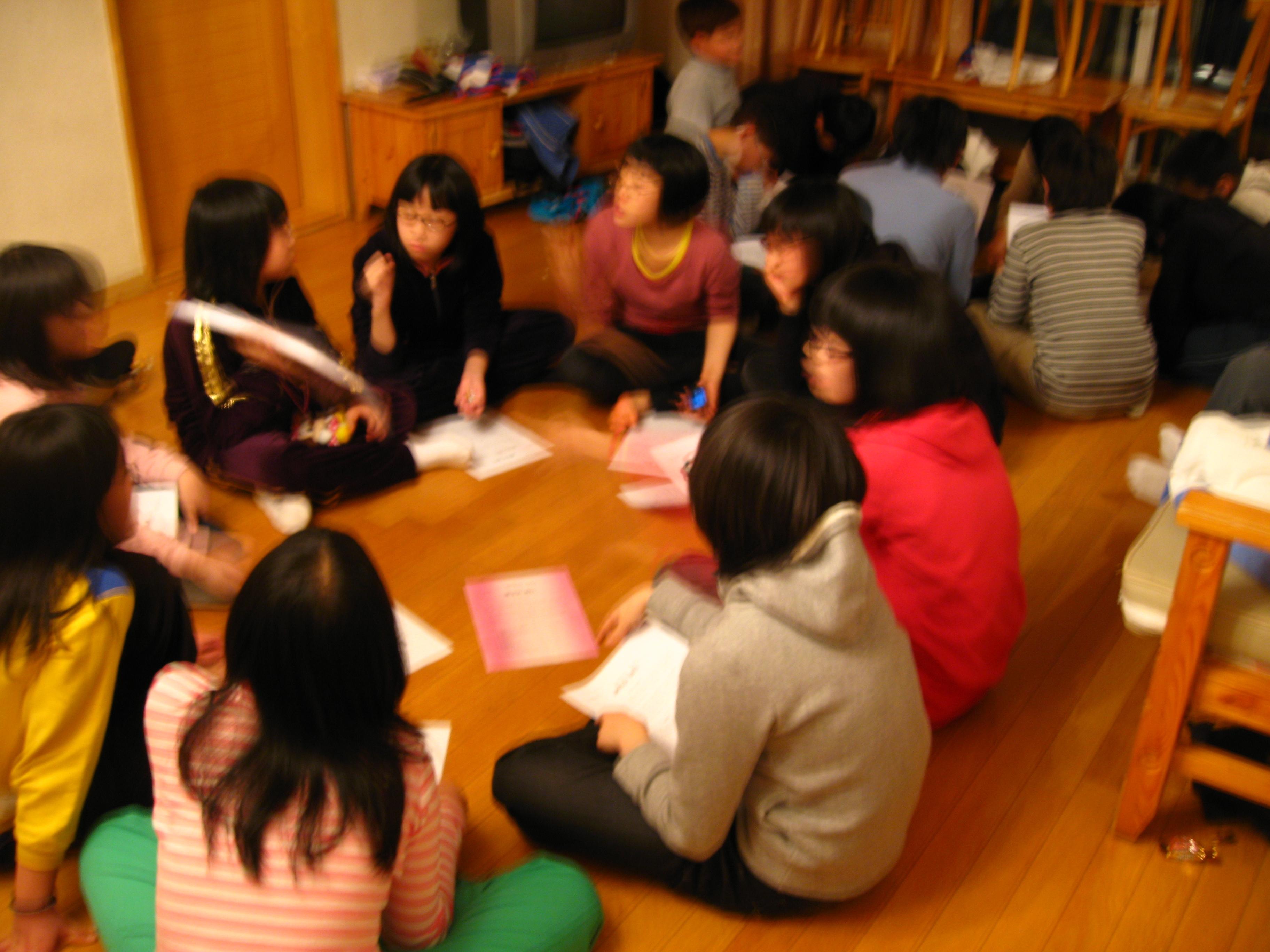 1일차 저녁식사 후 모둠별 리더십훈련 프로그램을 진행하였습니다.