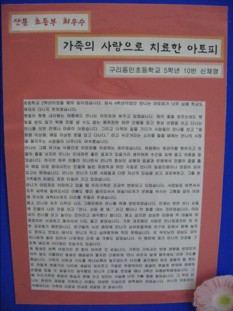 언니의 아토피는 약품보다는 가족의 사랑과 인내로 치료된 것 같습니다.