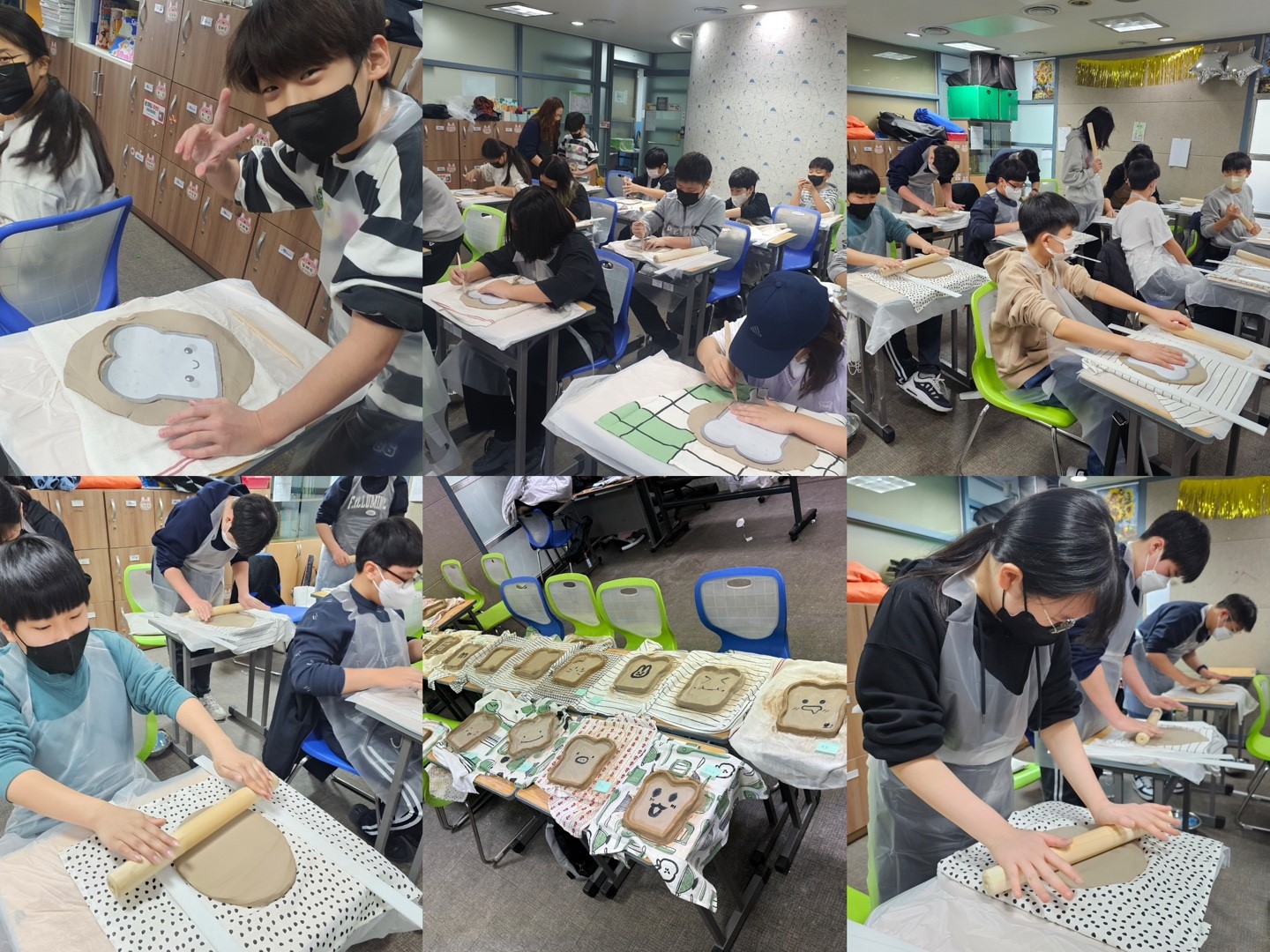 첫 번째 시간 백자토를 손으로 만져보고 탕탕탕 둥글둥글 홍두깨를 이용해 평평하고 넓게 펼치며 힘써보고 흙을 동글동글 길게 말아 그릇 테두리를 붙이고 그 위에 붓을 이용해 색을 입히고 그림을 그리며 작업에 몰두하였어요. 멋진 작품이 나오길 기대하며 방과후아카데미 친구들 오늘은 모두 도예가 체험을 해보았습니다.