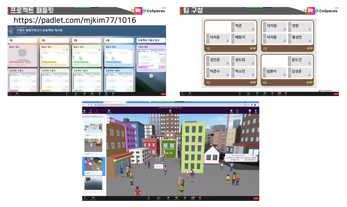 8회차에서는 우리 지역을 분석한 내용으로 미래 도시를 VR/AR로 창안하는 마루리 작업과 발표 연습을 하였습니다.