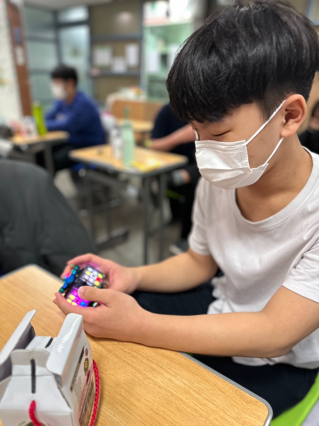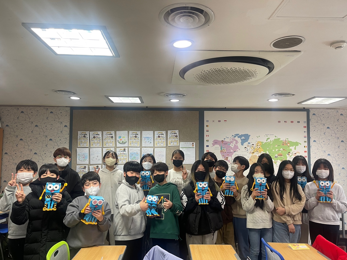 안녕하세요 늘푸름방과후아카데미입니다. 오늘은 디지털새싹 마지막 수업을 했습니다!~^^ 초등반은 티처블 머신으로 얼굴인식하는 활동을 하며 티처블 머신으로 얼굴을 학습시킨 얼굴을 인식해 학습한 얼굴이면 마티가 눈에 불이 들어오고 춤을 추며 문을 열어주고 학습한 얼굴이 아니면 눈을 움직여 화난 얼굴로 변하고 옆으로 이동해 문을 막아 들어갈 수 없는 활동을 해보았습니다. 중등반은 AI로봇큐브가 좋은말과 나쁜말을 구분하게 하기와 티처블머신 비디오 학습 활용하기를 하였습니다.