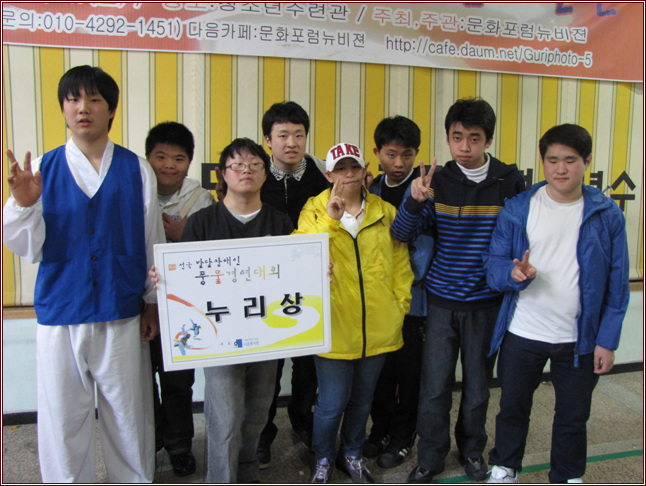 평생학습관 장애우아카데미 풍물경연대회 수상 작성자 관리자 등록일자 2011년 4월 18일 15시 55분 7초 조회 1,507 다운복지관에서 주최.주관한 제1회 전국발달장애인 풍물경연대회 "다운누리풍물한마당"에서 평생학습관 지원사업으로 저희 수련관에서 꾸준히 수업을 들어온 "한울타리풍물패"가누리상을 수상하였습니다.모두 축하해주세요.^^ img1.jpg [ Size : 171.17KB , Down : 126 ] 미리보기 다운로드 목록보기