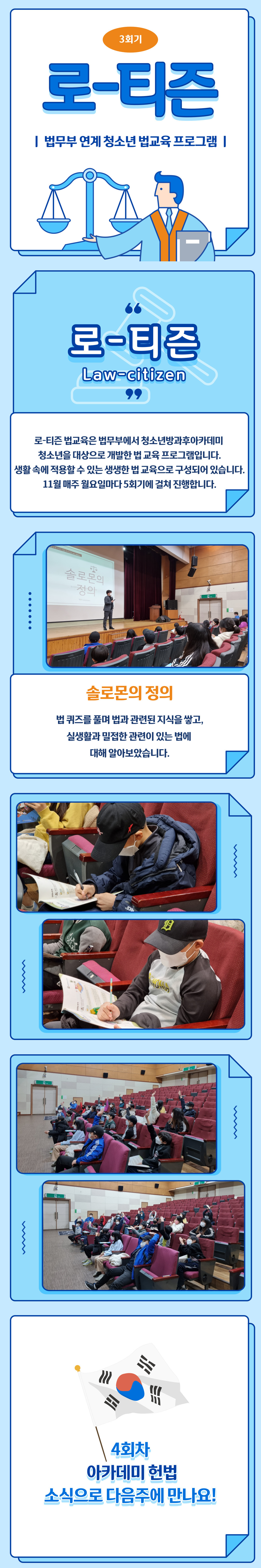 늘푸름방과후아카데미 법무부 연계 법 교육 '로-티즌' 3회기 작성자 관리자 등록일자 2021년 11월 16일 14시 0분 18초 조회 676 001.jpg [ Size : 173.62KB , Down : 163 ] 미리보기 다운로드 로티즌3회기.jpg [ Size : 1.38MB , Down : 199 ] 미리보기 다운로드 목록보기