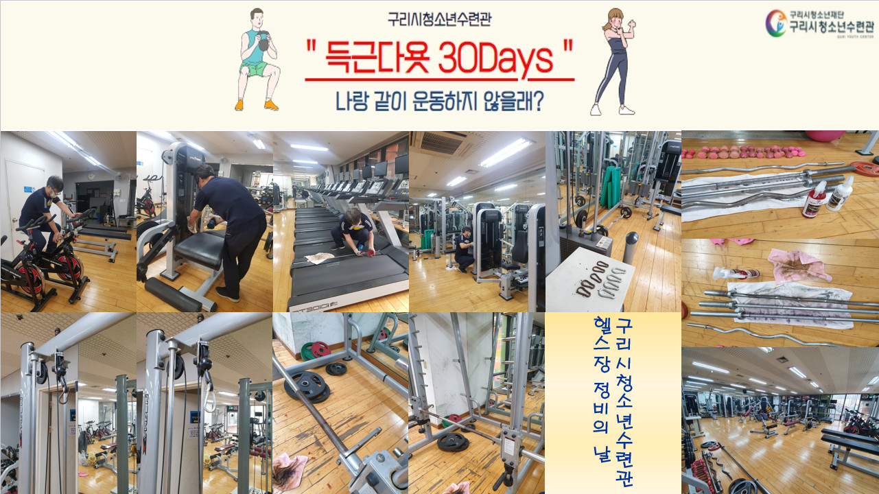 득근다욧 30Days!! 헬스장 정비의 날 작성자 관리자 등록일자 2021년 5월 26일 12시 18분 42초 조회 689 구리시청소년수련관 헬스장 재운영을 위한 새단장!6월부터 사용될 공간으로 사용 공간은 물론이고 청소년 친구들이 운동할 사이클 정비부터 런닝머신, 모든 운동기구 등 말끔한 기구를 사용할 수 있도록 조금 더 쾌적한 공간으로 모두 꼼꼼하게 진행되었으며, 청소년 여러분을 맞이 할 준비를 하였습니다! Cap 2021-05-26 12-14-03-537.jpg [ Size : 346.13KB , Down : 258 ] 미리보기 다운로드 Cap 2021-05-26 12-14-03-537.jpg [ Size : 346.13KB , Down : 194 ] 미리보기 다운로드 목록보기