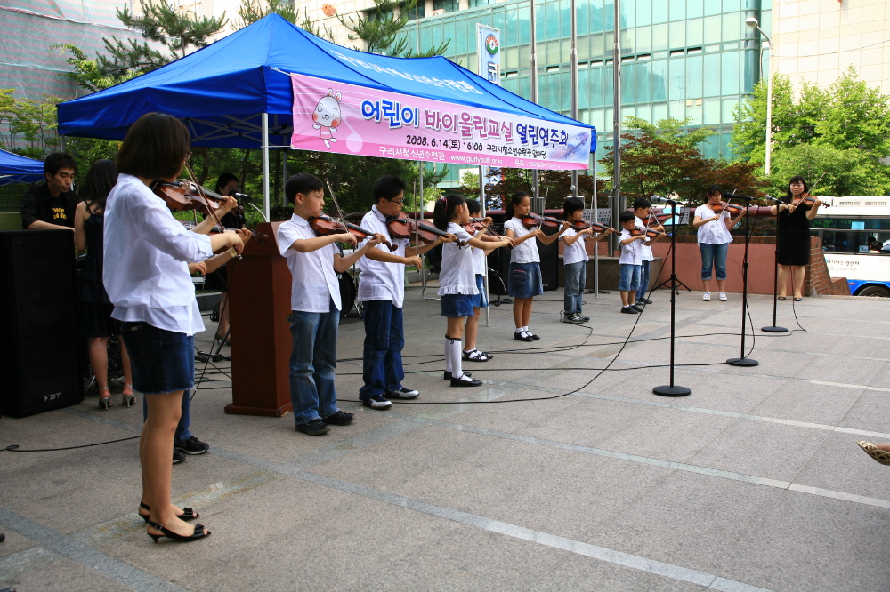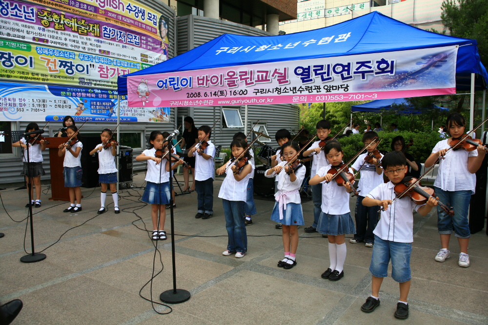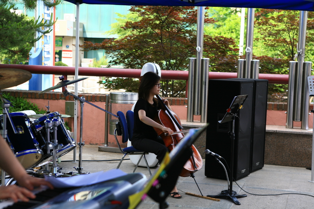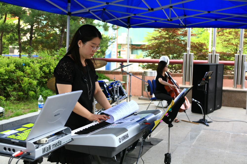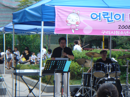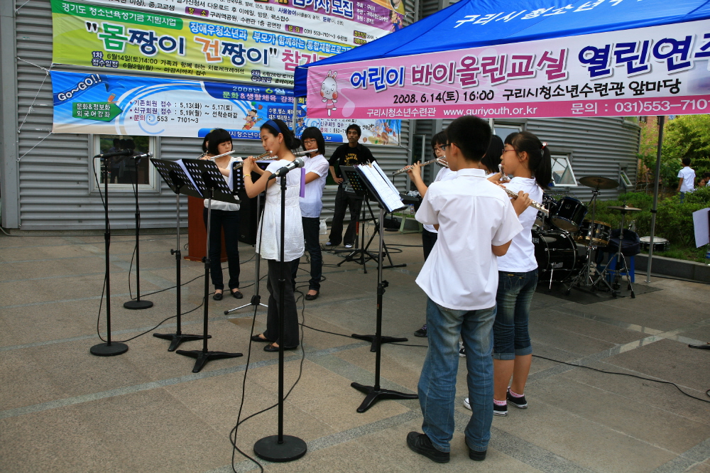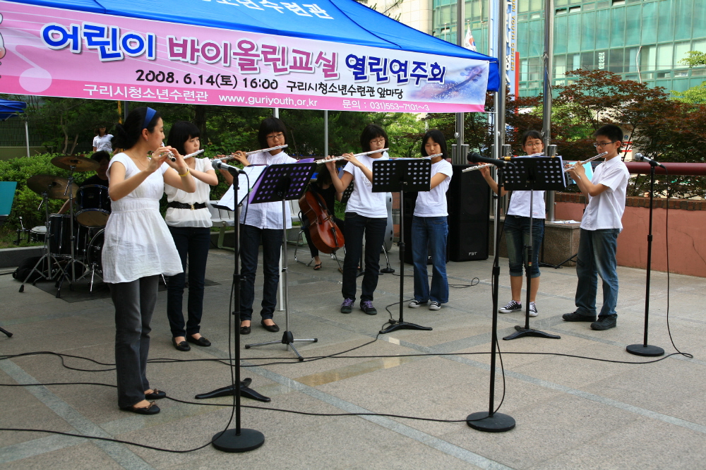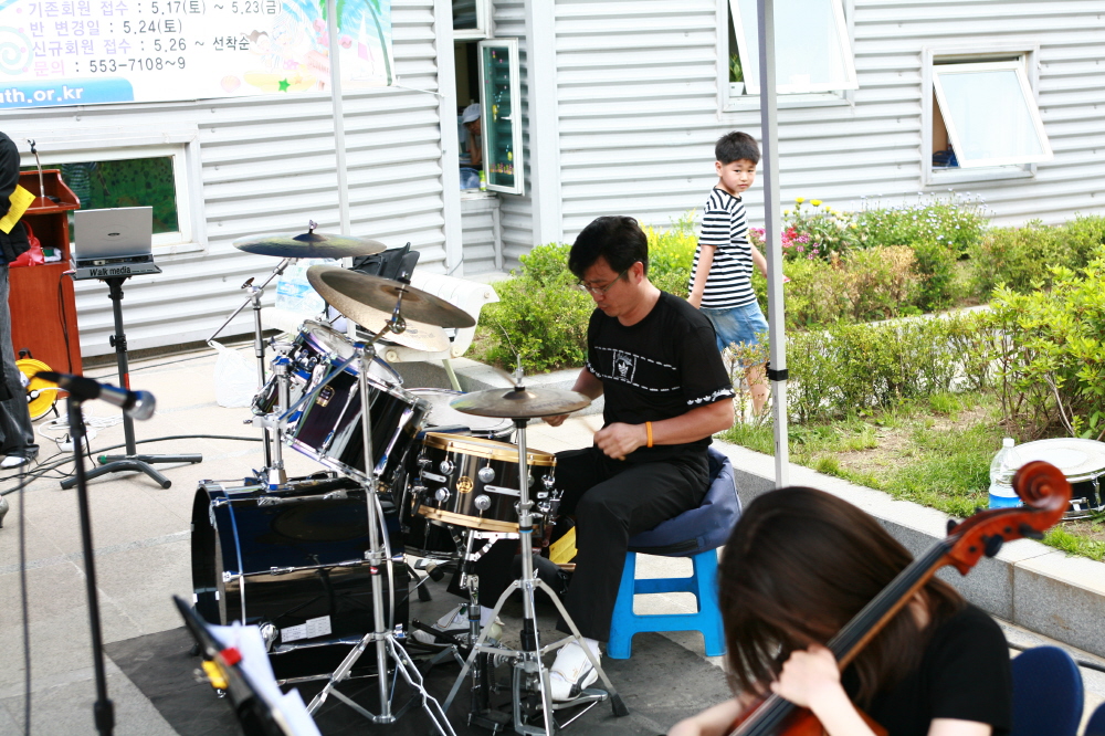 우리 수련관 관장님과 플륫교실 수강생, 드럼 강사님이