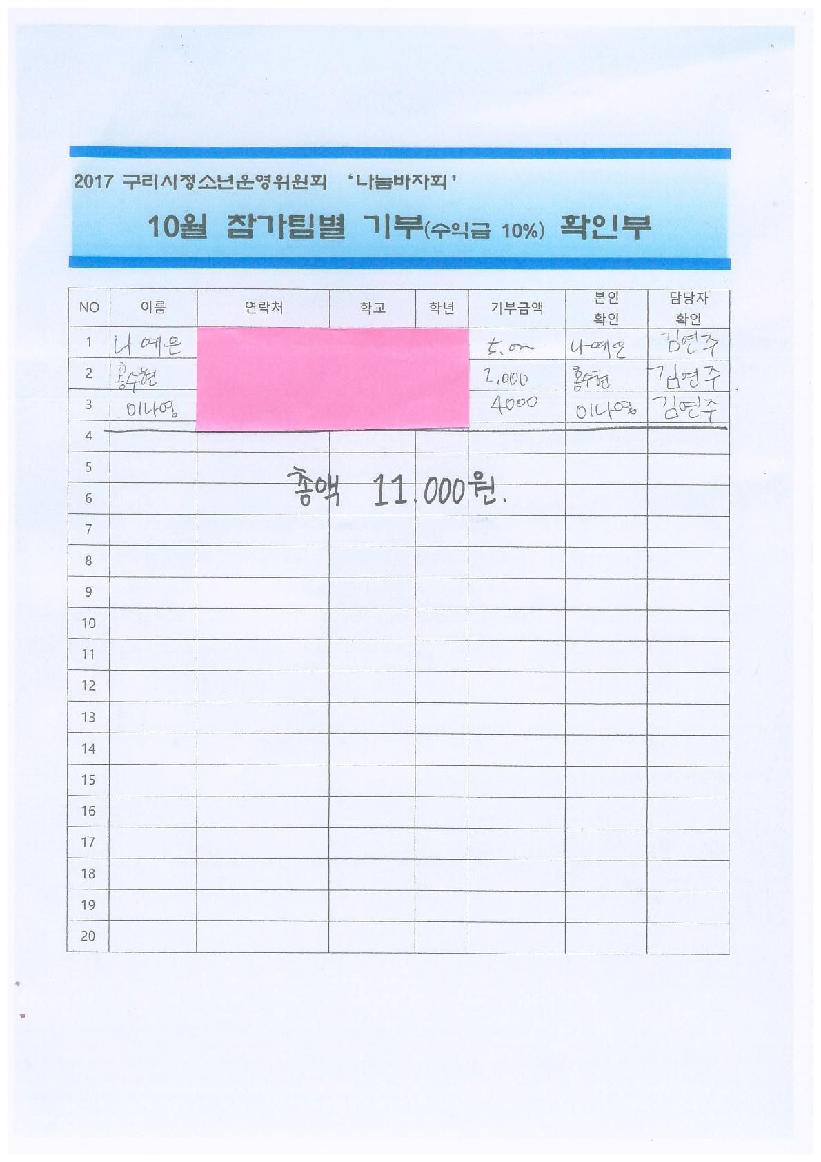 2017.10월 나눔바자회 수익금10% 기부