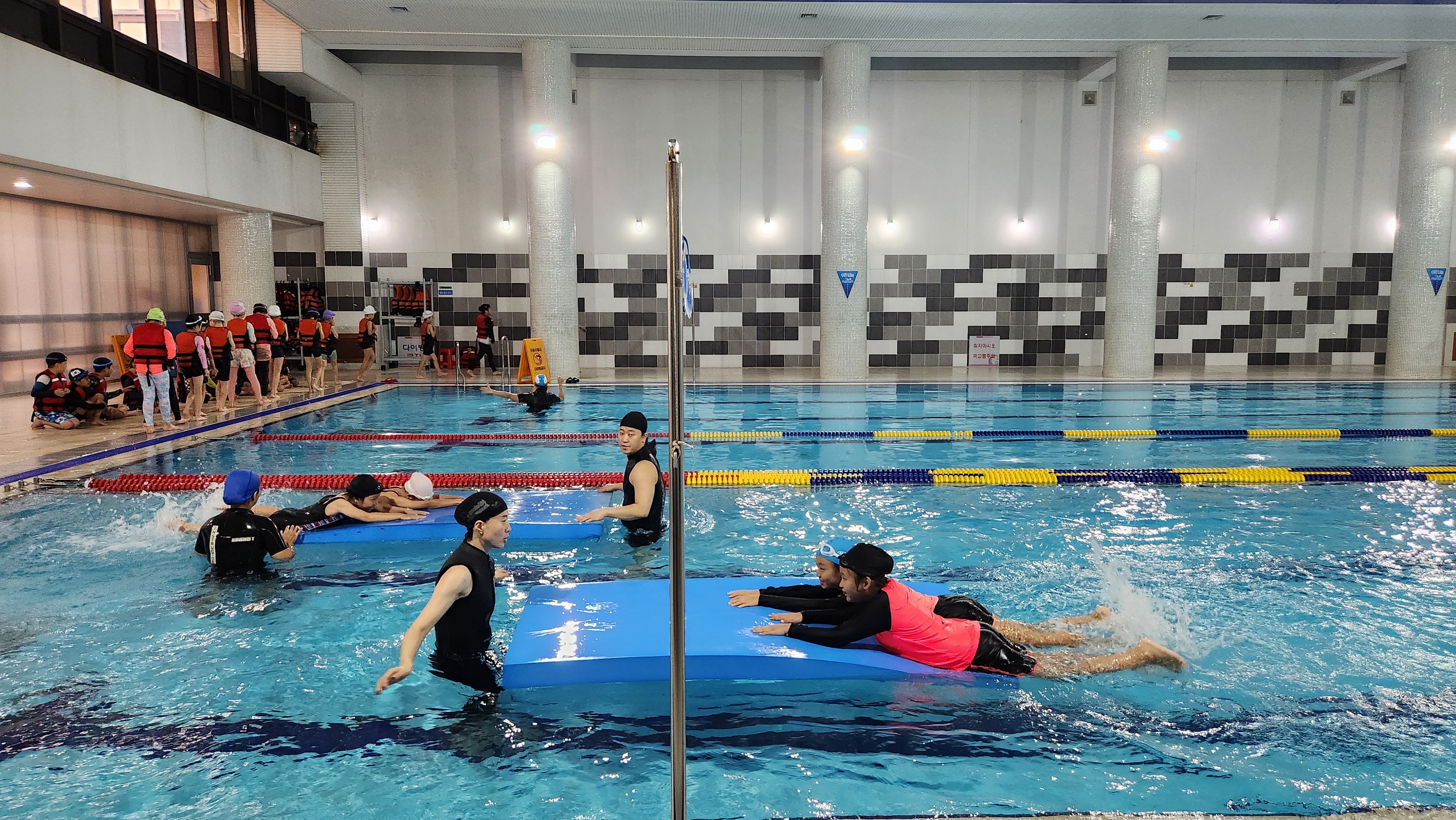 2024 구리 학생생존수영교육 작성자 이경주 등록일자 2024년 7월 17일 10시 48분 8초 조회 270 7월11일(목)~12일(금), 7월15일(월)~16일(화) 총 4일간 장자초(3개반) 3학년 교육을 마지막으로 '2024 구리 학생생존수영교육' 운영이 마무리 되었습니다.수업 내용으로는 지진 및 화재 발생 대피 교육 진행 후 기본 평영 익히기, 이동 및 구조하기, 체온유지, 부유물 사용하여 이동하기 등에 대한 교육을 진행하였습니다. 1.jpg [ Size : 2.02MB , Down : 102 ] 미리보기 다운로드 2.jpg [ Size : 2.08MB , Down : 100 ] 미리보기 다운로드 3.jpg [ Size : 3.44MB , Down : 122 ] 미리보기 다운로드 4.jpg [ Size : 3.71MB , Down : 130 ] 미리보기 다운로드 5.jpg [ Size : 2.24MB , Down : 107 ] 미리보기 다운로드 6.jpg [ Size : 2.82MB , Down : 109 ] 미리보기 다운로드 목록보기