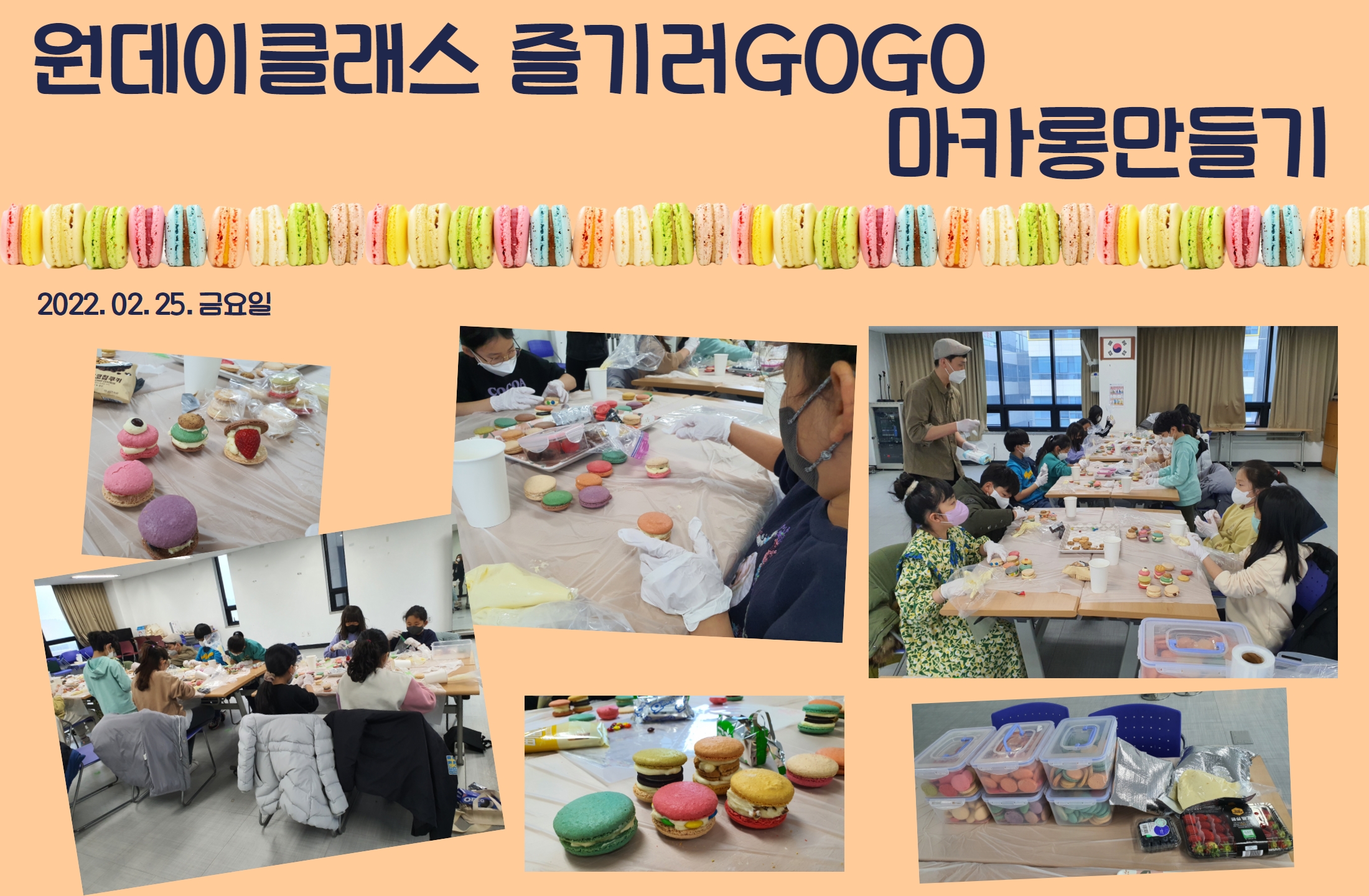 이동형청소년수련관 원데이클래스 즐기러GoGo! <마카롱만들기> 작성자 관리자 등록일자 2022년 3월 3일 17시 31분 31초 조회 653 활동사진(갈매).jpg [ Size : 1.49MB , Down : 198 ] 미리보기 다운로드 목록보기