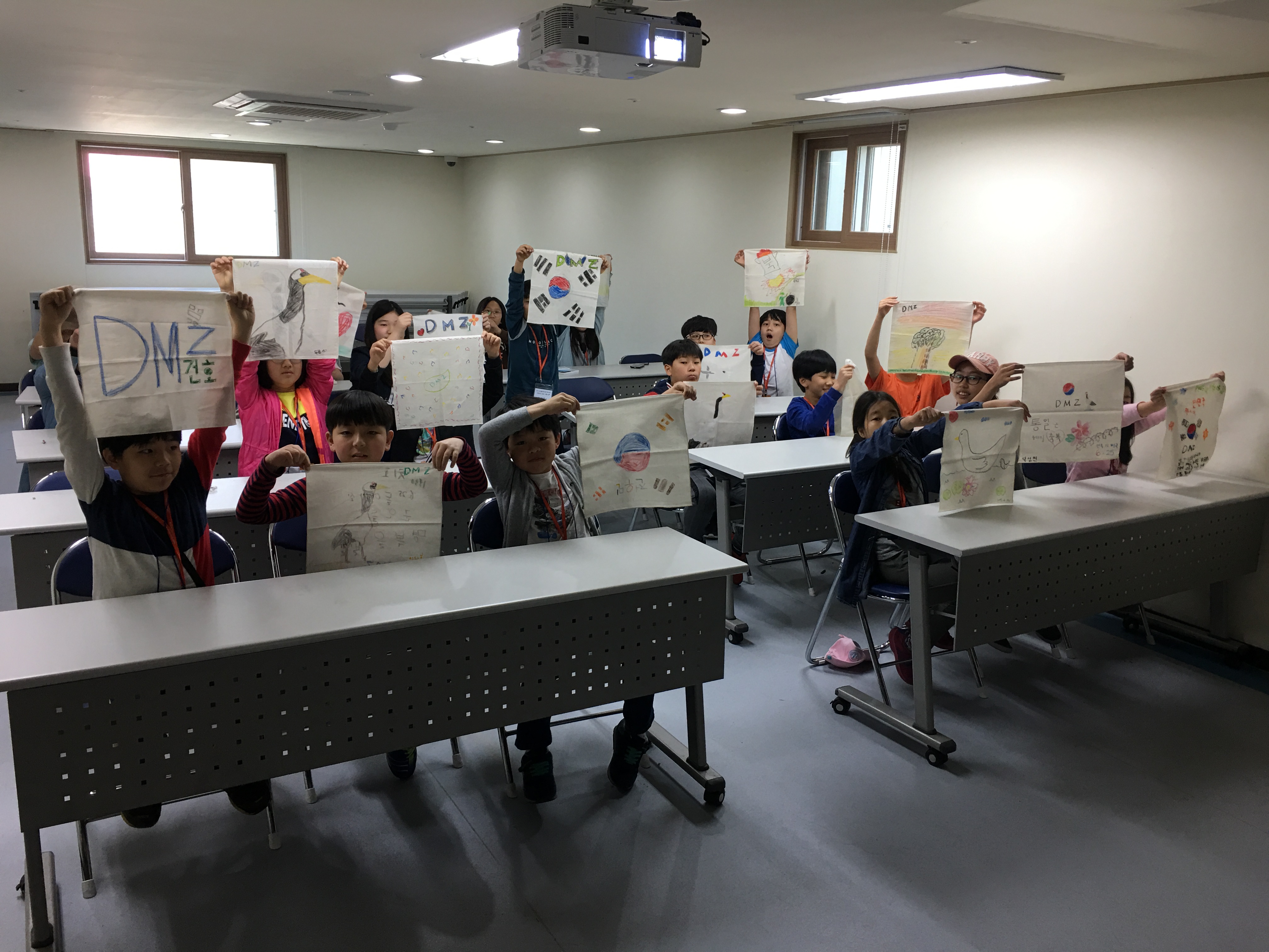 오전에는 캠프그리브스 내에서 DMZ 안의 생태문화에 대해 배우고 손수건을 만들어 보는 시간을 갖고,