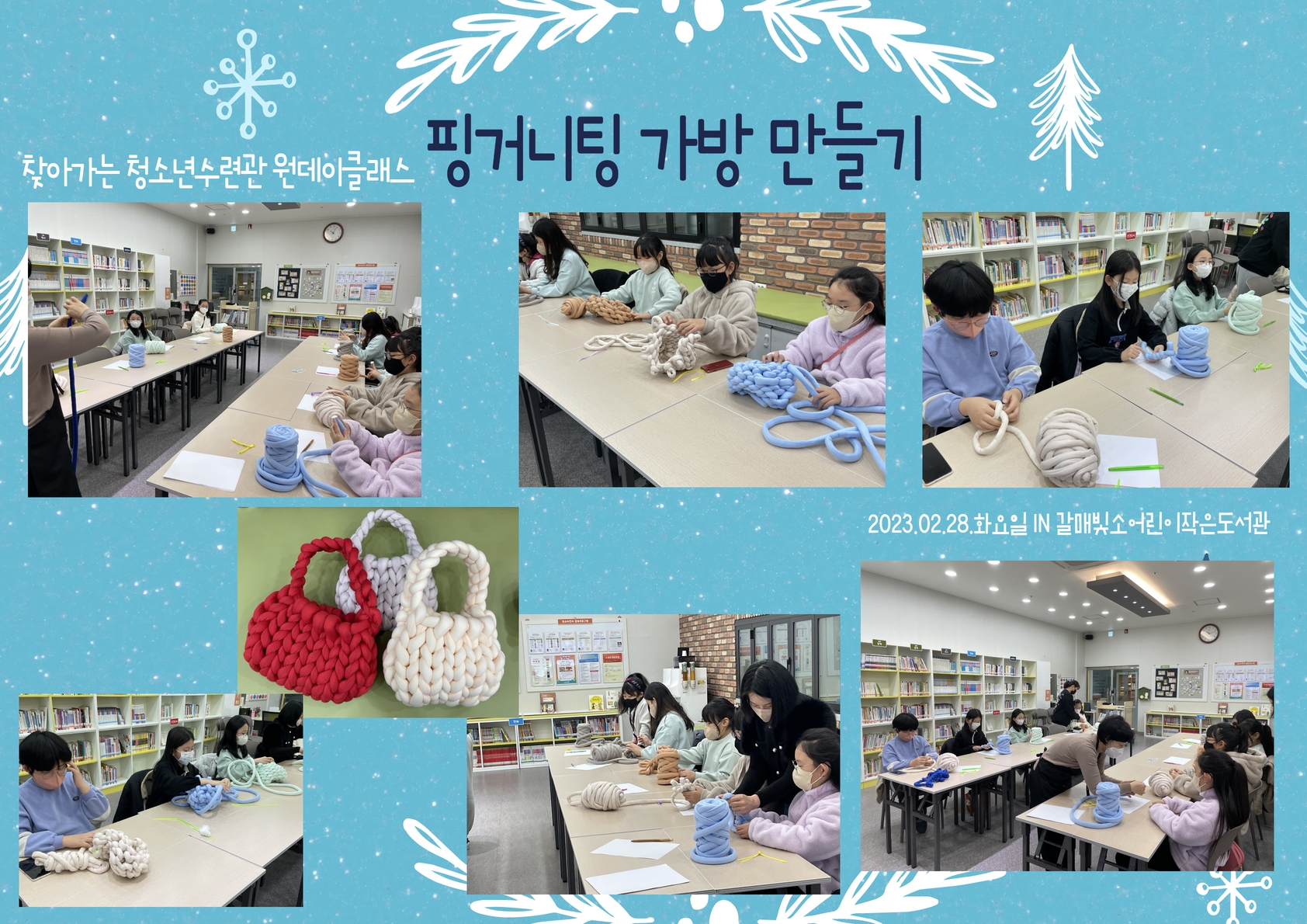 찾아가는청소년수련관 원데이클래스-핑거니팅 가방만들기(23.02.28) 작성자 관리자 등록일자 2023년 5월 3일 14시 4분 50초 조회 414 2회-230228.jpg [ Size : 1.45MB , Down : 145 ] 미리보기 다운로드 목록보기