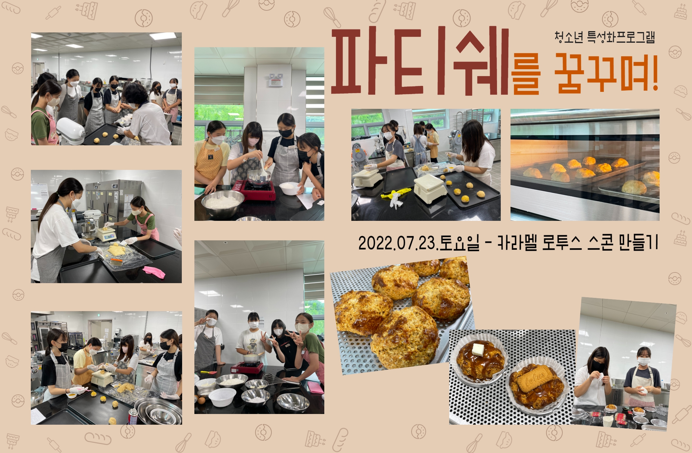 청소년 특성화 프로그램 - 파티쉐를 꿈꾸며 4회차(22.07.23) 작성자 관리자 등록일자 2022년 7월 25일 8시 57분 36초 조회 576 4회차.jpg [ Size : 1.5MB , Down : 210 ] 미리보기 다운로드 목록보기