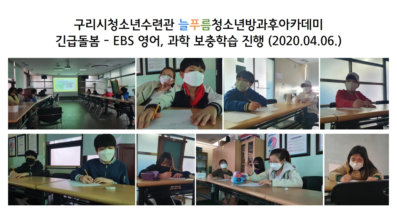 구리시청소년수련관이 휴관에 들어감에 따라 늘푸름청소년방과후아카데미도 긴급돌봄 형태로 운영이 되고 있습니다.